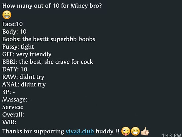 CumInMouth(Tip), CumOnBoobs(Tip), CumOnFace(Tip), B2B Massage, French-Kiss, BB-BlowJob, FuckJob, DATY, 69