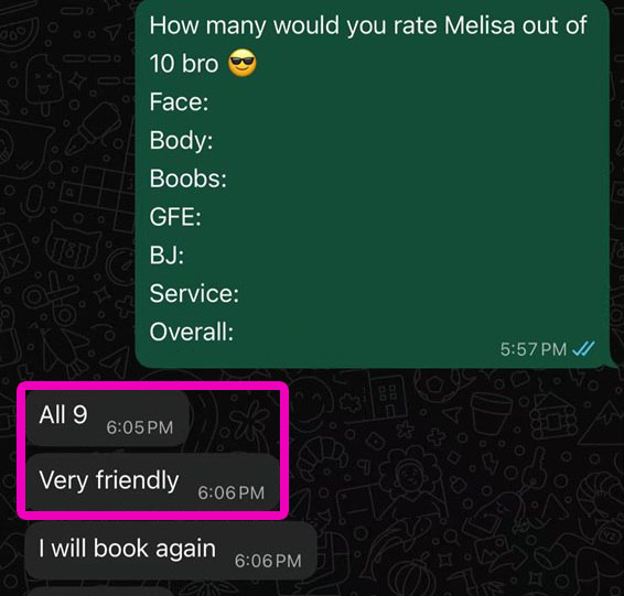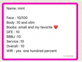 MMF 3P(Tip), CumInMouth(Tip), Ass-Rimming(Tip), CumOnBoobs(Tip), CumOnFace(Tip), Massage(10mins), French-Kiss, BB-BlowJob, FuckJob, DATY, 69